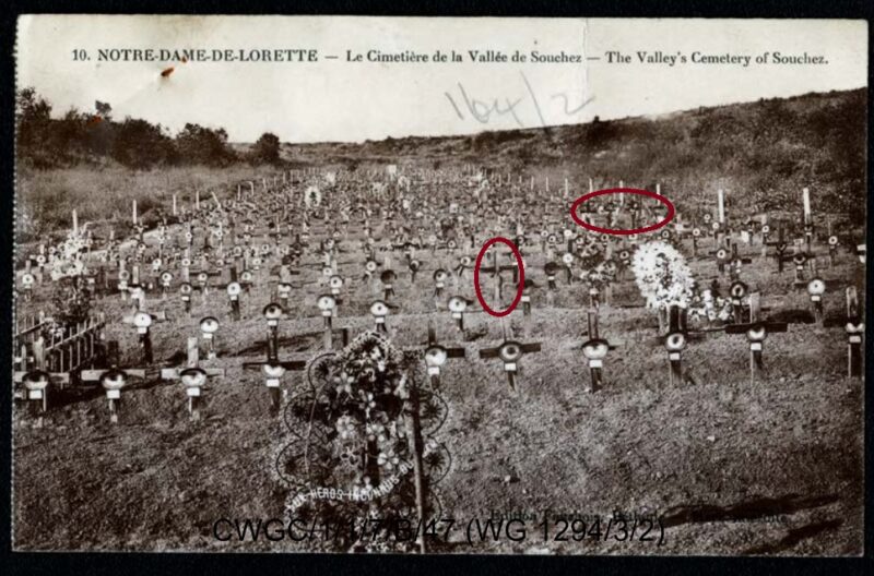 In 1922, a man came in search of his son’s remains, a Corporal Polcher, at La Vallee French Military Cemetery No. 1. The father had been informed the plot with his son’s remains were to be exhumed to Notre-Dame-de-Lorette, with the family’s permission. This plot beside the current CWGC cemetery named Zouave Valley Cemetery.