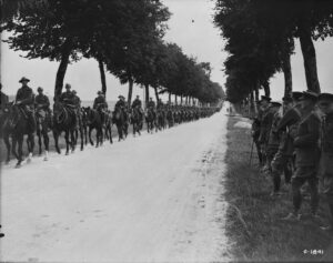 Inspection of Canadian Cavalry Brigade by General Sir Charles Kavanagh, 18 August 1917. The Canadian Cavalry Brigade was an independent force from the Canadian Expeditionary Force, under British command. Sir Charles Kavanagh was the commander of the British Cavalry Corps. Gauchin-Verloingt. MIKAN No. 3394737